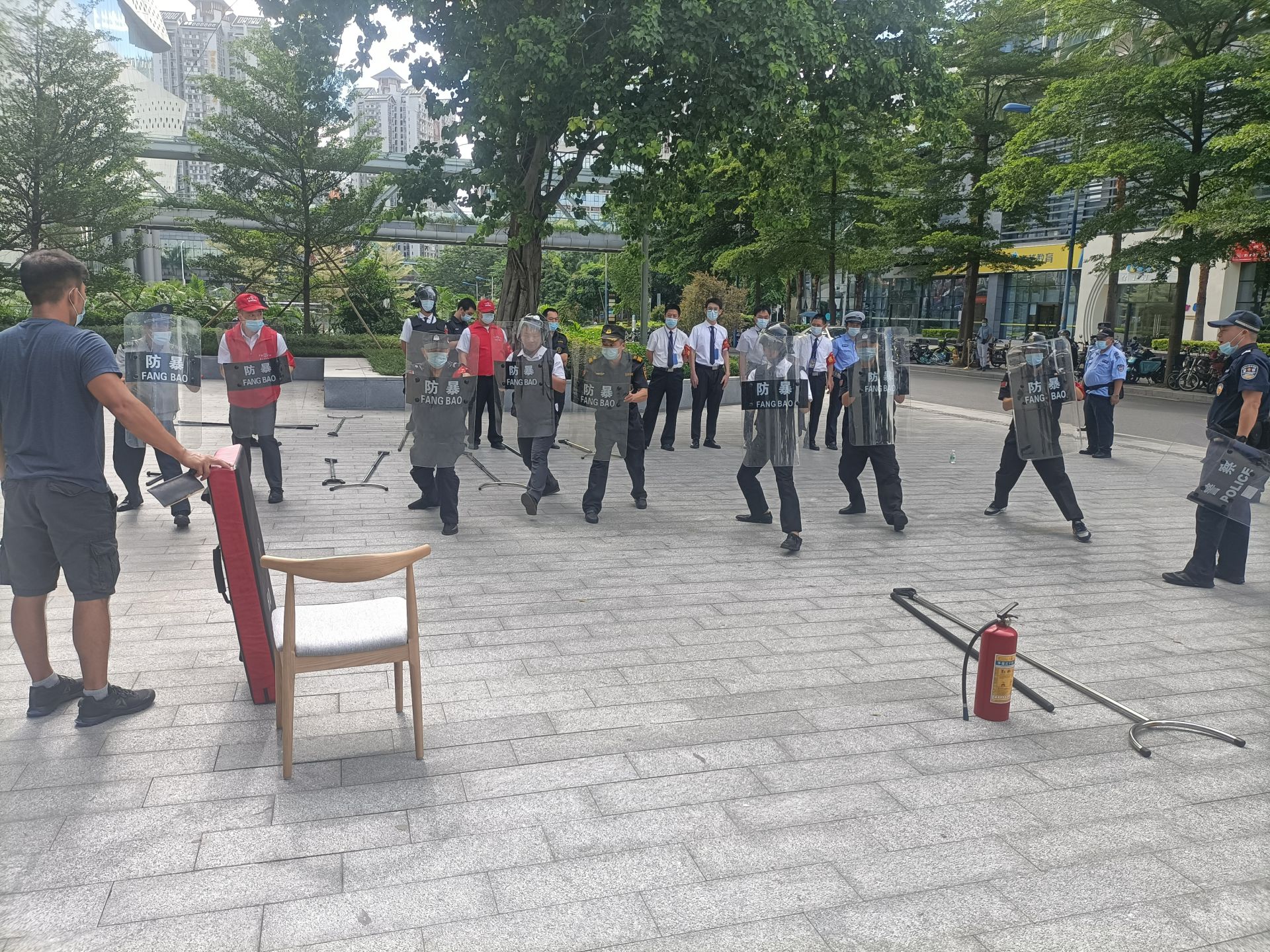 驻西村悦汇城项目开展防暴处突理论知识及实战演练。理论知识学习中,针对悦汇城的实际情况,就如何做好反恐应急工作进行了深入的讲解。